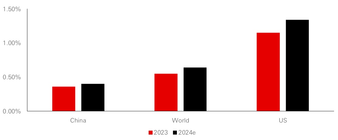 Figure 3: We are in early stages of growth in China cloud spend (Cloud spend as per cent of GDP)
