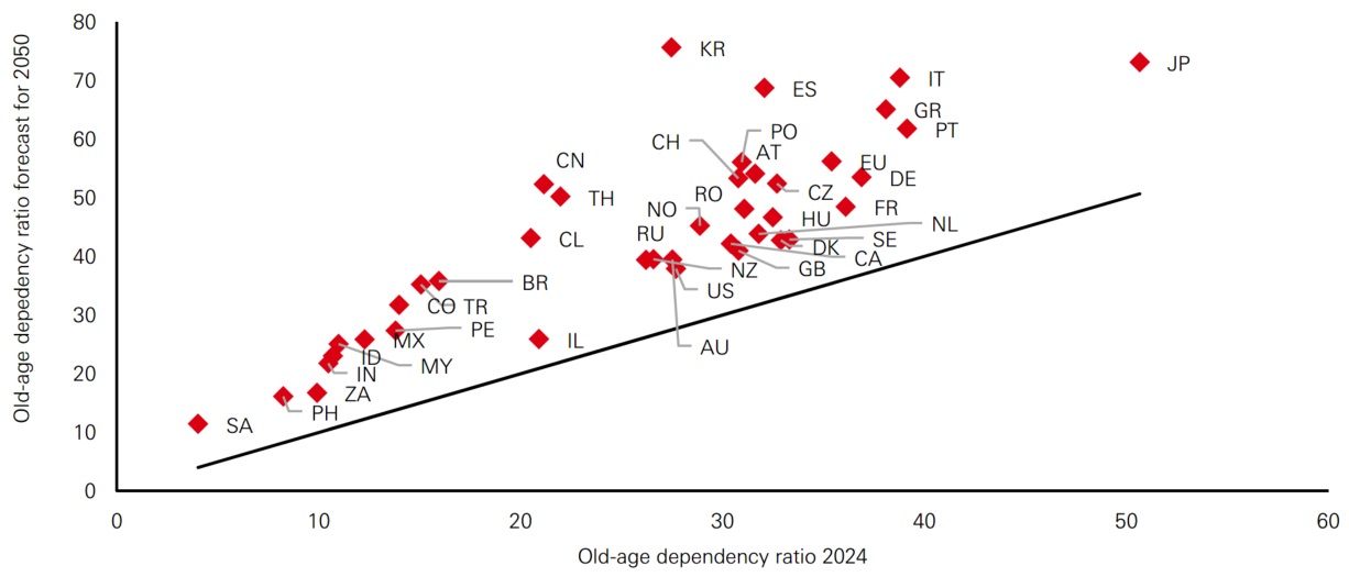 Demographic trends are another important factor influencing public debt in EM. EM economies generally have more favorable demographic profiles than DM, acting as a boost to economic growth and supporting debt sustainability over the long term. Countries like South Africa, many Southeast Asian nations, Mexico, and Saudi Arabia benefit from younger populations and growing consumer bases. However, not all EM regions enjoy these demographic advantages. Central and Eastern Europe face significant challenges, including aging populations and declining birth rates, which will weigh on growth potential and public debt.