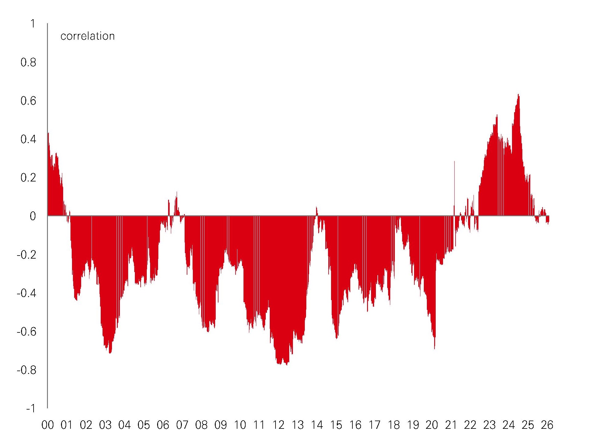 Rolling 12-month S&P 500/US 10-year correlation