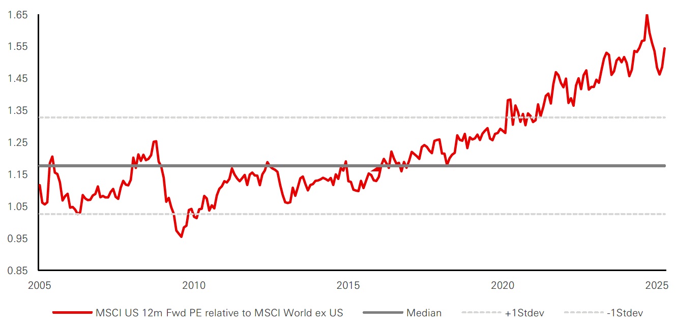 Figure 1: 12M forward P/E of MSCI US relative to MSCI World ex US