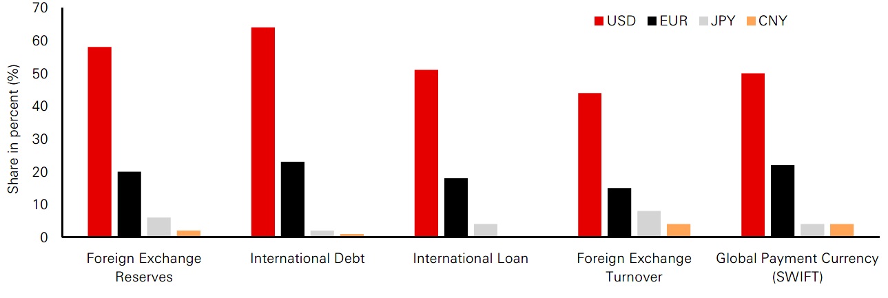 Source: HSBC AM, Bloomberg, US Treasury, US Fed, ECB, IMF COFER, SWIFT, BIS, Atlantic Council, September 2025.