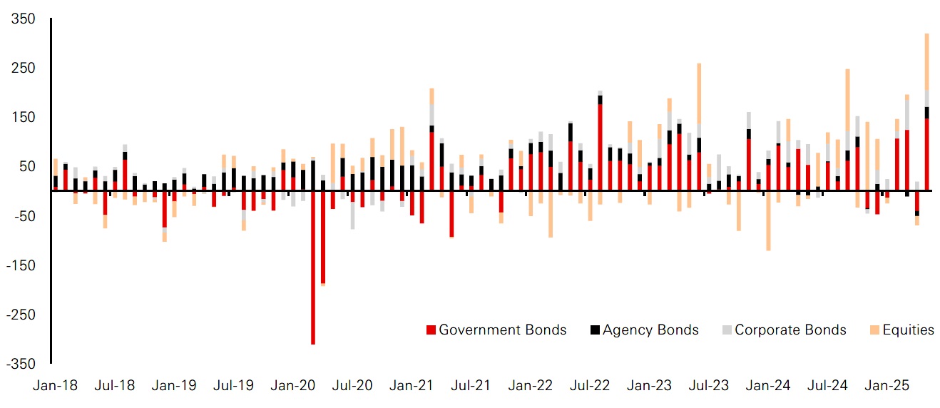 Figure 6: Foreign net flows into long-term US assets (in USD bn)