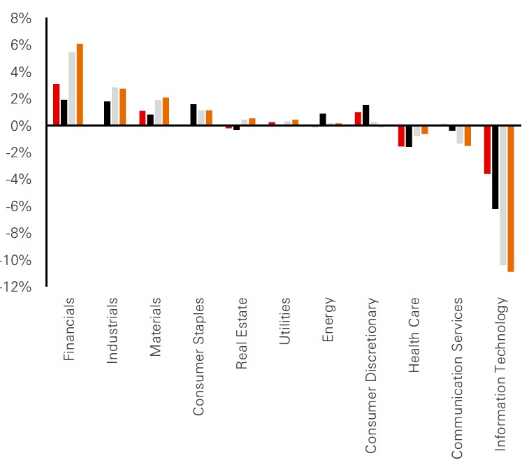 • Sector skew: Technology and financials dominate market-cap benchmarks, creating additional cyclical vulnerabilities