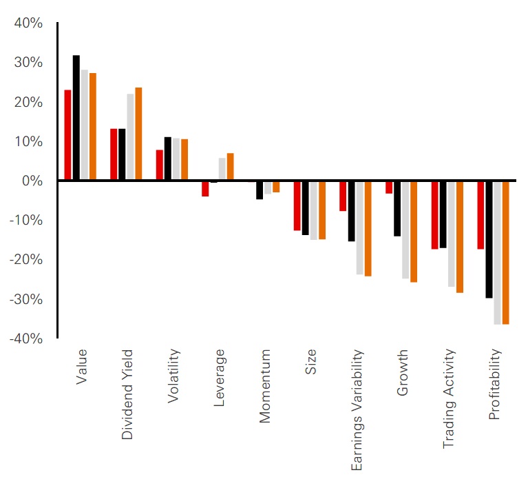 • Style bias: By construction, market-cap weighting favours growth and momentum at the expense of value